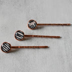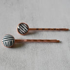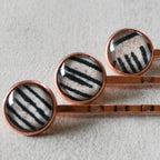 Dark green stripes on an off-white background create a stylish, bohemian-inspired pattern that adds subtle sophistication to each bobby pin. This print offers a chic, earthy vibe perfect for everyday wear.