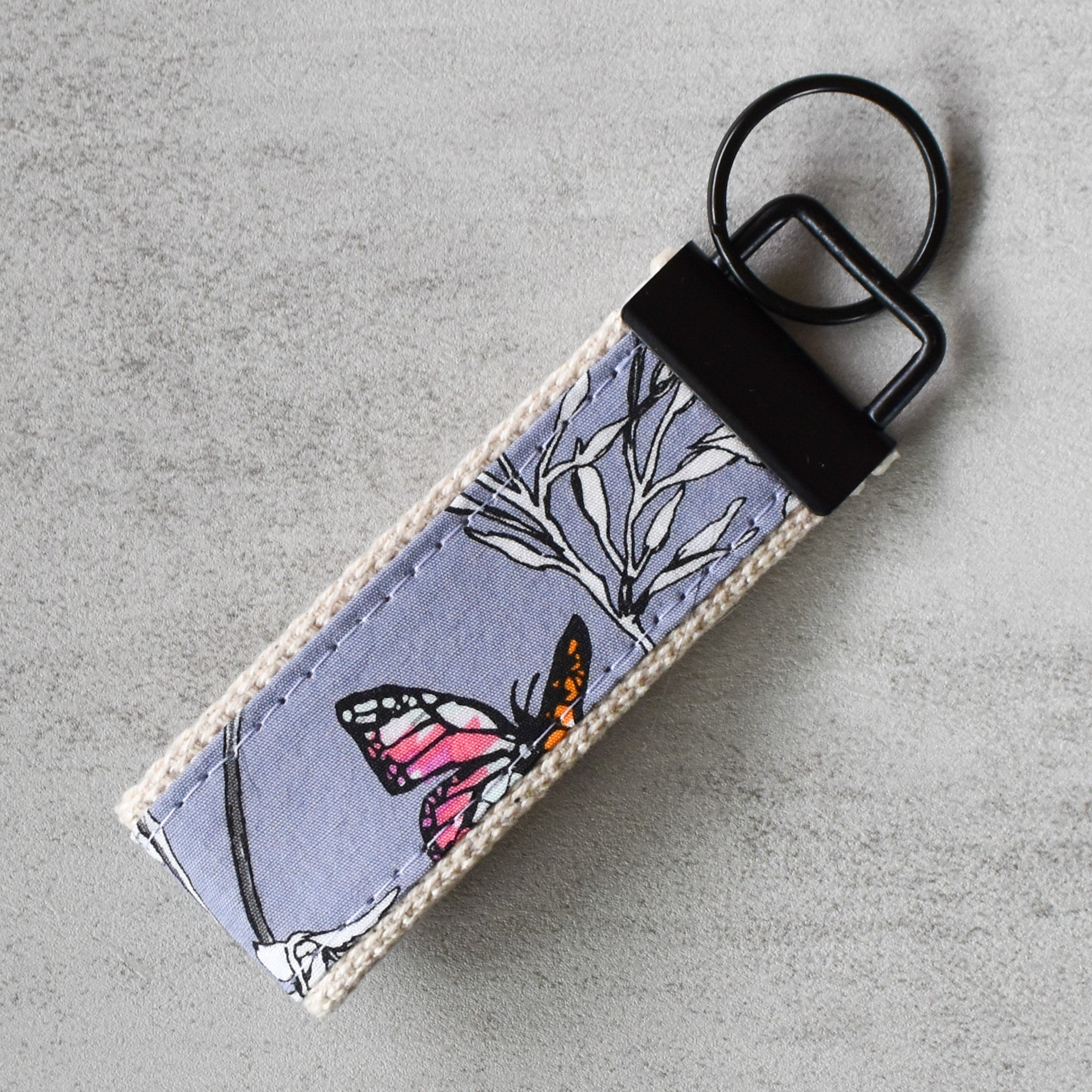 Lavender Dream Key Fobs bring a calming, whimsical touch to your everyday essentials. Featuring a soft purple background adorned with white roses and delicate butterflies, this key fob pairs gentle beauty with durable cotton webbing. It’s designed to keep your keys close and easy to spot wherever you go.