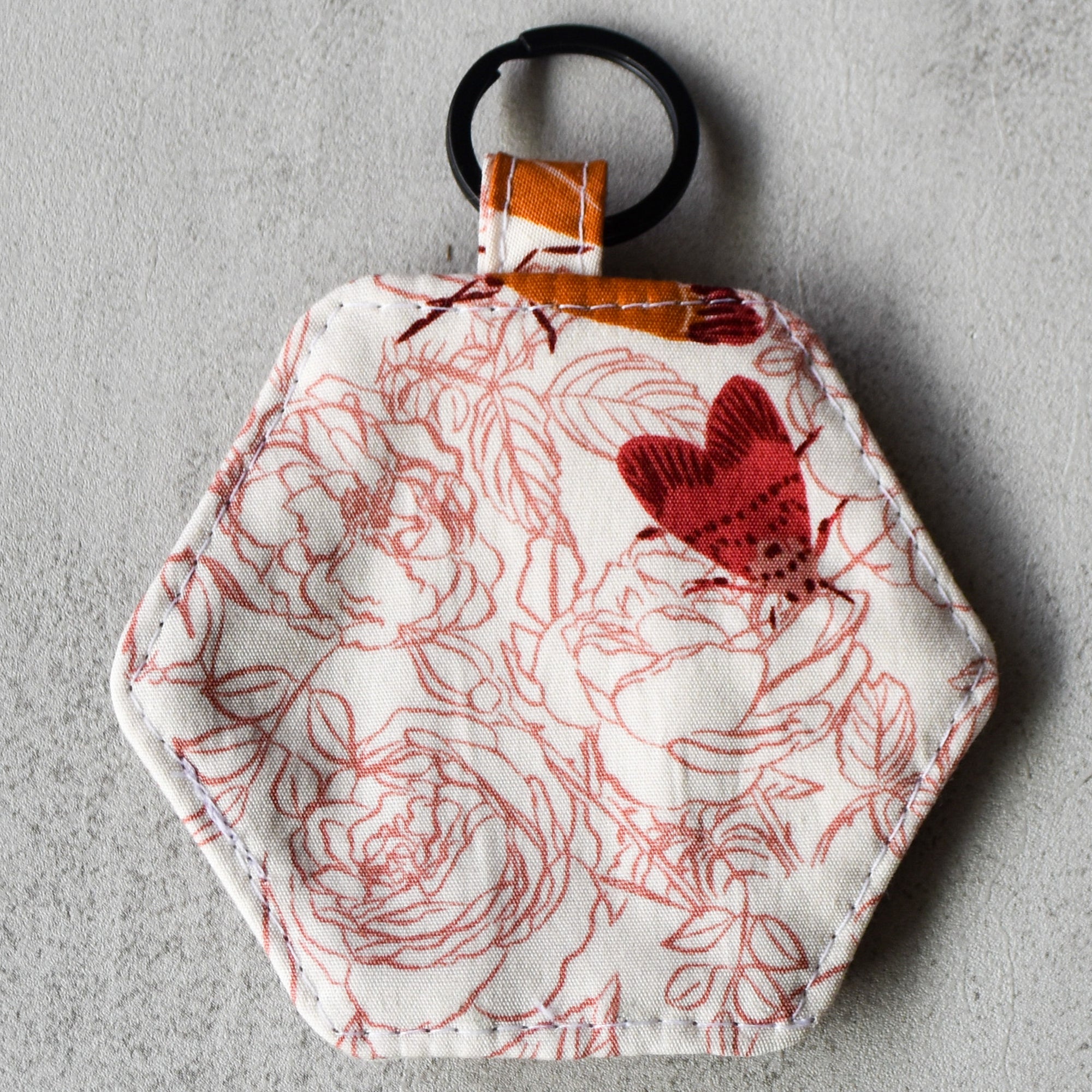 Moths cover a subtle background of flowers on this keychain bag! This handy pouch can be clipped to your purse, backpack, or keys and can be used to carry coins or similar-sized small items. A cute and functional accessory while you're on the go!