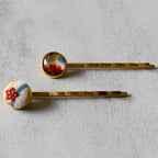 These lightweight bobby pins offer a simple, dependable hold, paired with warm gold-toned metal for a polished finish that complements the print beautifully.