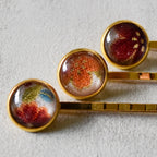 To keep your bobby pins looking their best, avoid prolonged exposure to water, perfumes, or hair products. Gently wipe the fabric or glass surface with a soft, dry cloth when needed. Store them in a dry place away from direct sunlight to preserve the colors and materials.