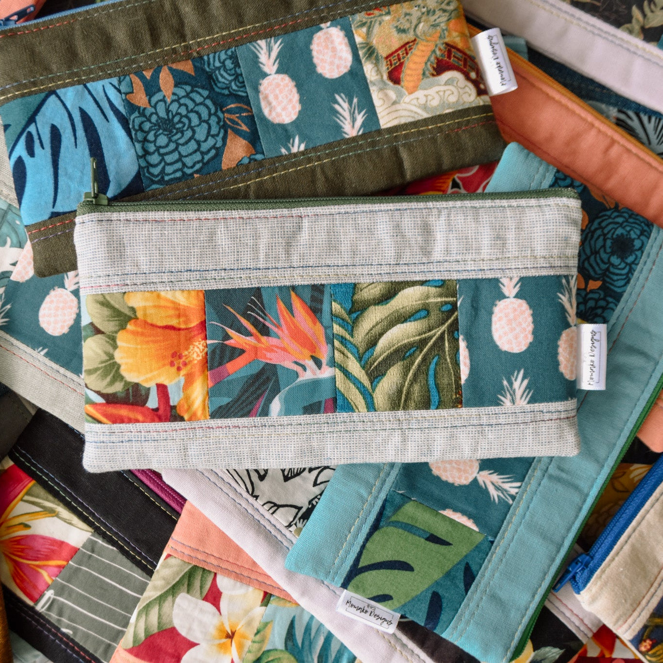 Made in small batches on Kauaʻi, Hawaiʻi, each pencil case is truly one of a kind. This listing is updated regularly to reflect available designs. The pencil case shown is a sample only; zipper color may vary but will always coordinate with the patchwork prints. No two pencil cases are exactly alike, making yours uniquely special.