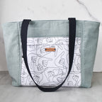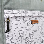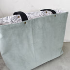 Dusty blue corduroy meets a playful white-and-black shaka print, giving this tote a relaxed yet polished look. Clean lines and a soft texture make it versatile for everyday use, while the print adds a subtle pop of personality.